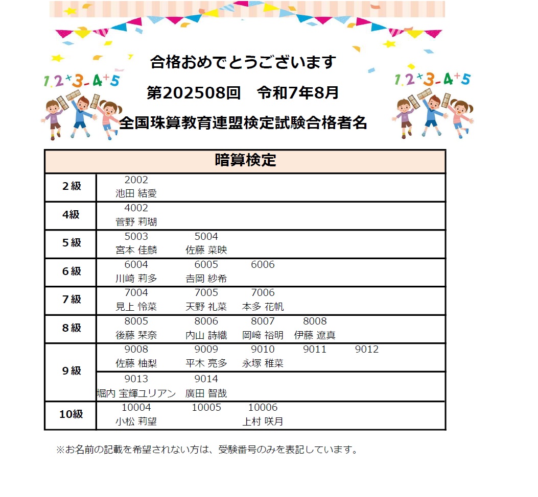全珠連検定合格者番号