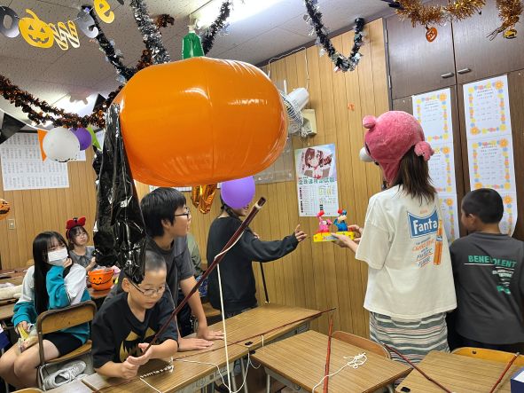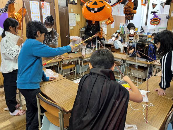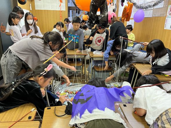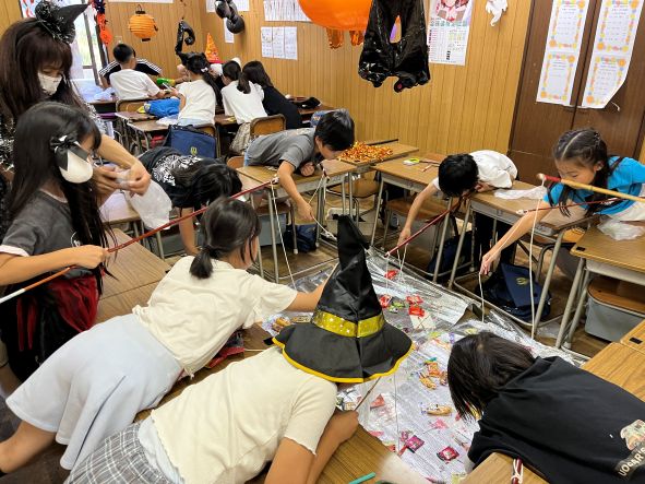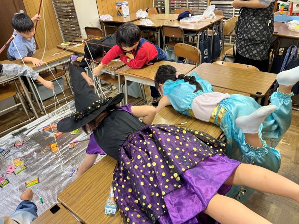 2025/10/17 ハロウィンイベント🎃 10/16・10/17 ハロウィンイベント🎃を行いました。 お菓子や景品を釣り堀でゲット! 最初は釣り竿を持って釣っていましたが、最後は釣り糸を短く持って、机に腹ばいになって夢中でとっていました。 大盛り上がりのイベントでした😊