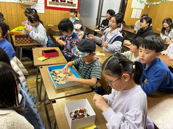 チーム戦でゲームを行い、ゲームで勝ったチームから、お菓子を選びました。